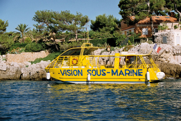 A sub-aqua view of the sea around the Cap d’Antibes, via a glass-bottomed boat. Departs from Ponton Courbet, bd Guillaumont (near the Juan le Pins tourist office), and travels around to the southern tip of Cap d’Antibes before returning to Juan les Pins. Trip time approx. 1 hour. Cost €12 children €6 Operates from April to September.